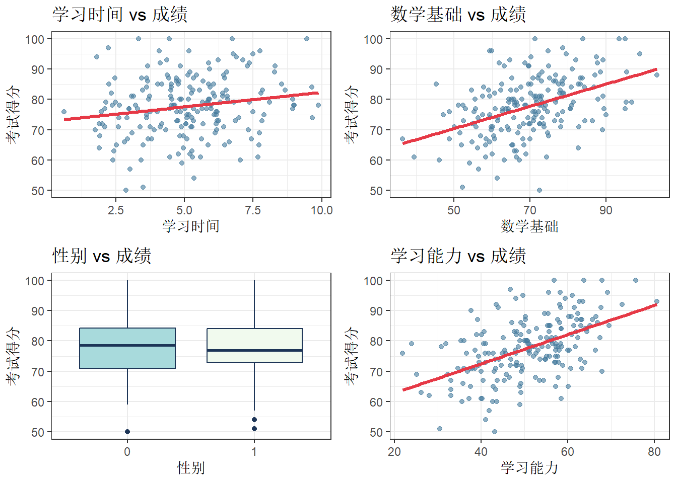 初步异常值筛查:通过散点图、描述统计初步识别极端值,为后续模型诊断做准备。\